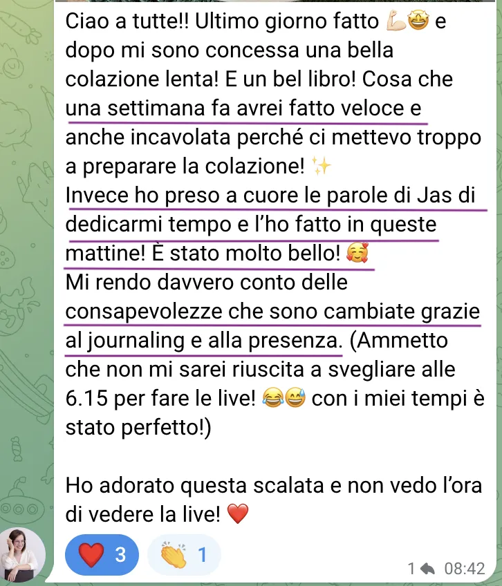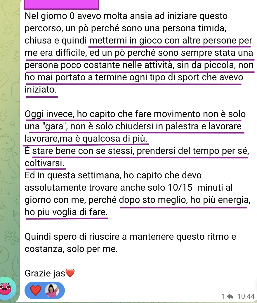 Ricevere supporto costante, condividere i progressi e restare motivata grazie a un gruppo dedicato.