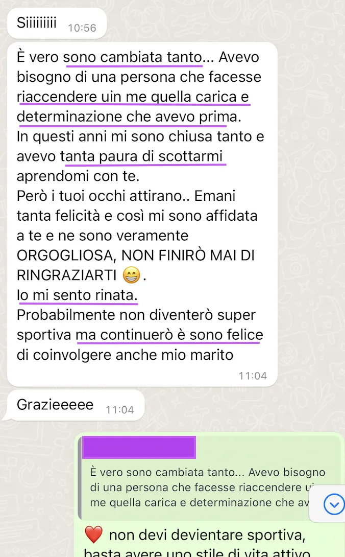 Parallelamente, il mio lavoro di Coach unisce il movimento fisico e la crescita personale, supportando le mie clienti a integrare il movimento nella loro vita quotidiana in modo naturale e armonioso, senza stravolgere le loro routine, ma adattandolo come una parte essenziale del loro stile di vita. Il movimento è ciò che riporta fiducia, autostima e la convinzione che, passo dopo passo, ce la si può fare.
